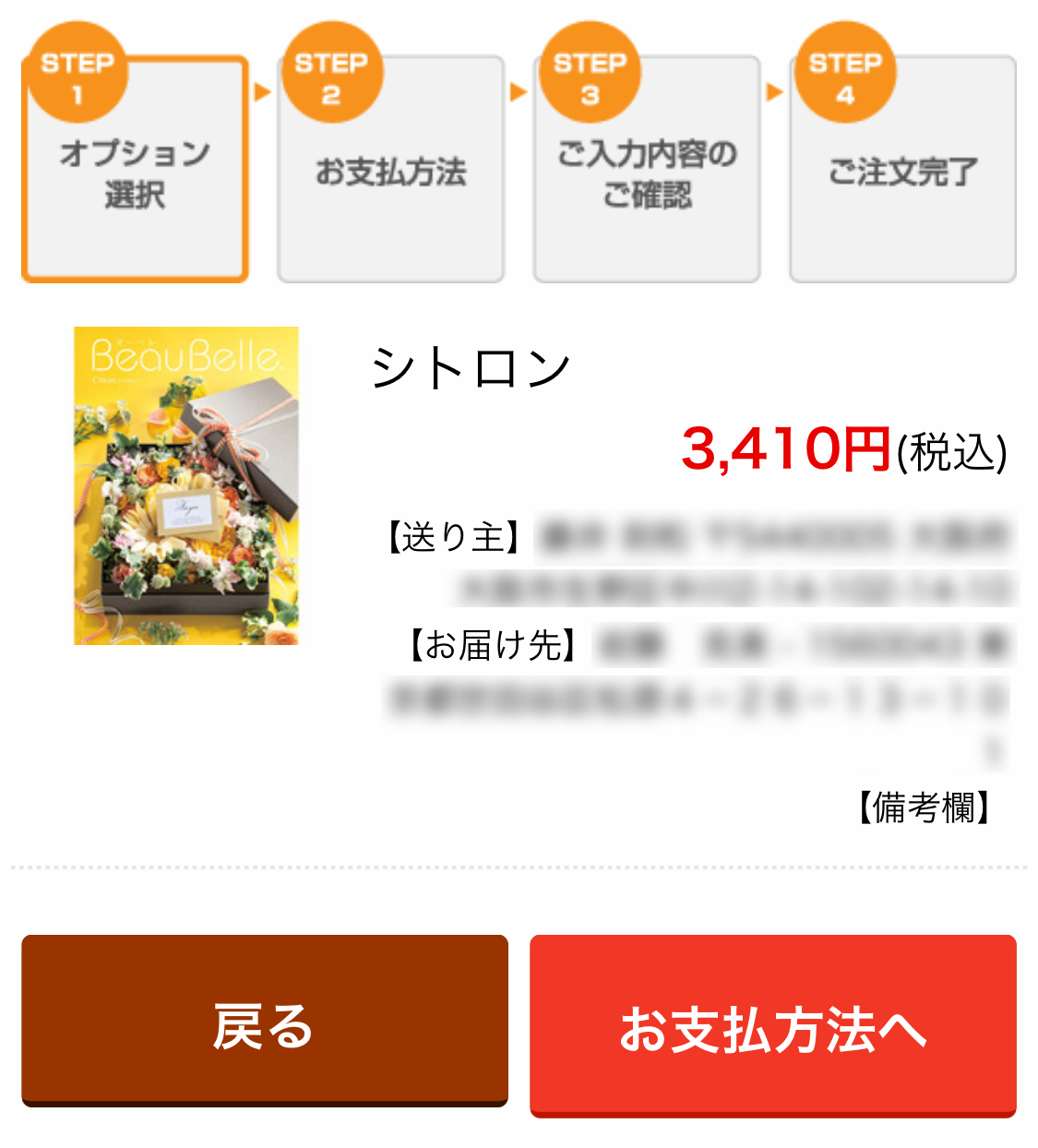 ご注文内容をご変更される場合は、『戻る』ボタンをタップして、情報を修正してください。