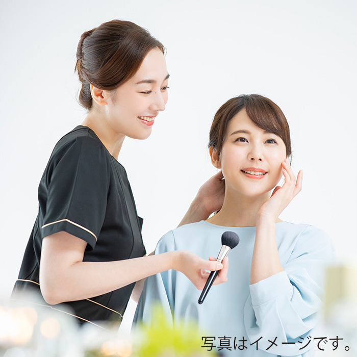 穂先には山羊毛を使用しています。ふんわりとした平な形状ですが毛量があり、筆をねかせて使うことで、しっかりとチークを入れることができます。チークブラシを初めて使う方には、使いやすいおススメの筆です。